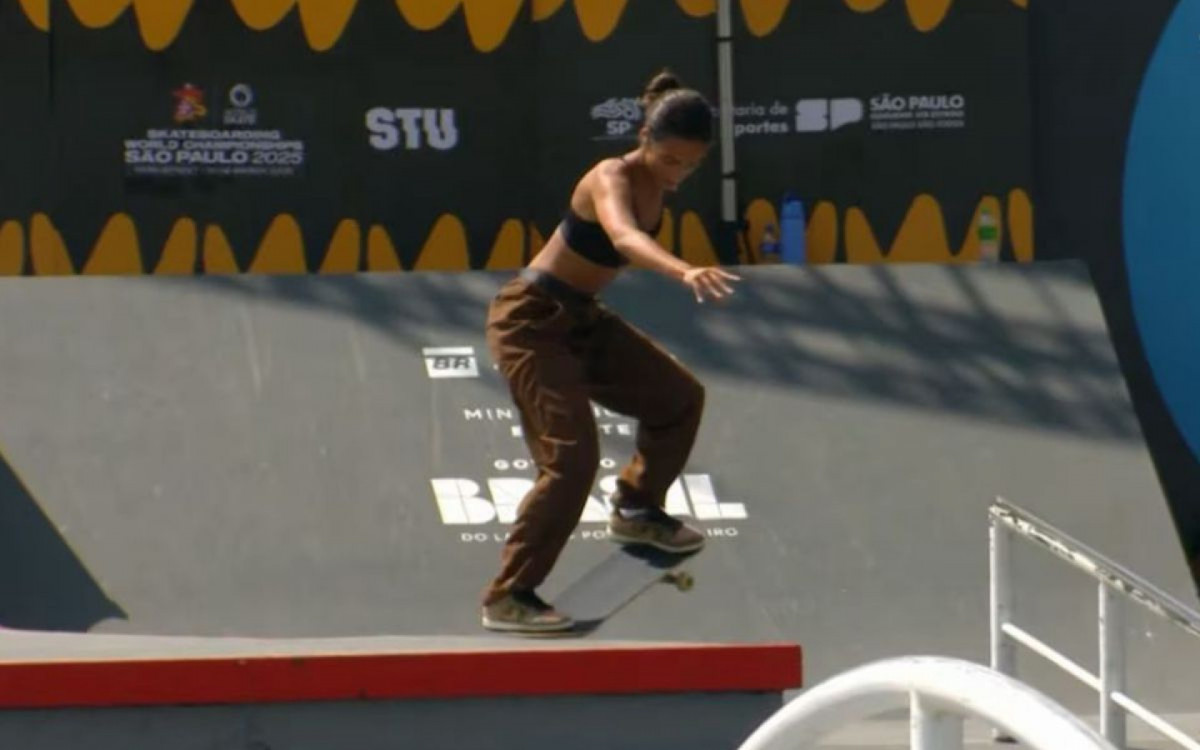 Rayssa Leal em ação no Mundial de Skate Street, em São PauloReprodução / SporTV