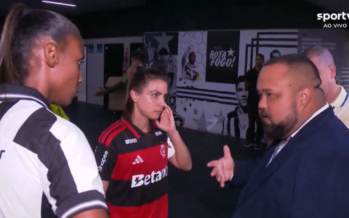 Delegado da partida conversa com jogadoras de Botafogo e FlamengoReprodução/SporTV