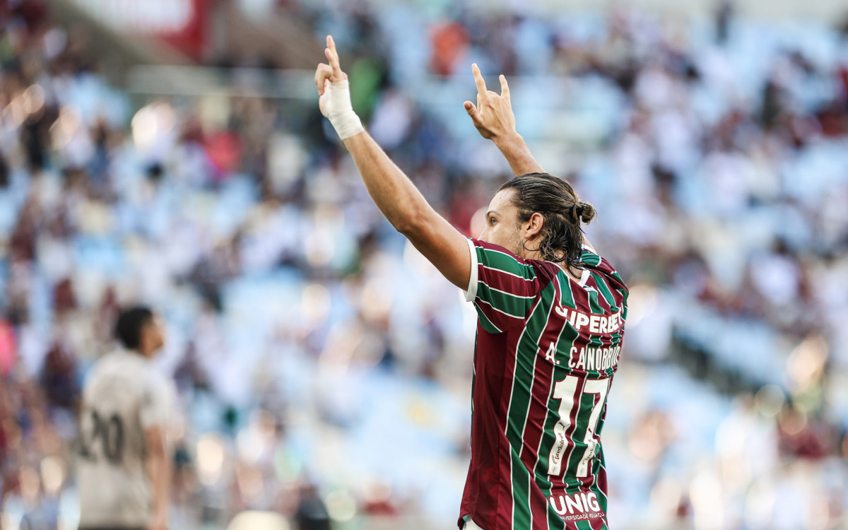 Canobbio comemora com a torcida o gol marcado contra o FuracãoLUCAS MERÇON / FLUMINENSE F.C