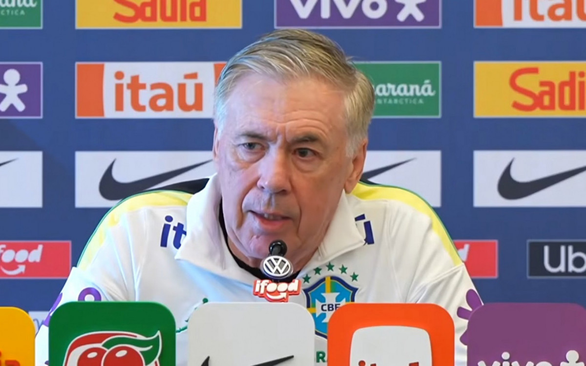 Carlo Ancelotti, em coletiva de imprensa nesta quarta-feira (25)Reprodução / CBF