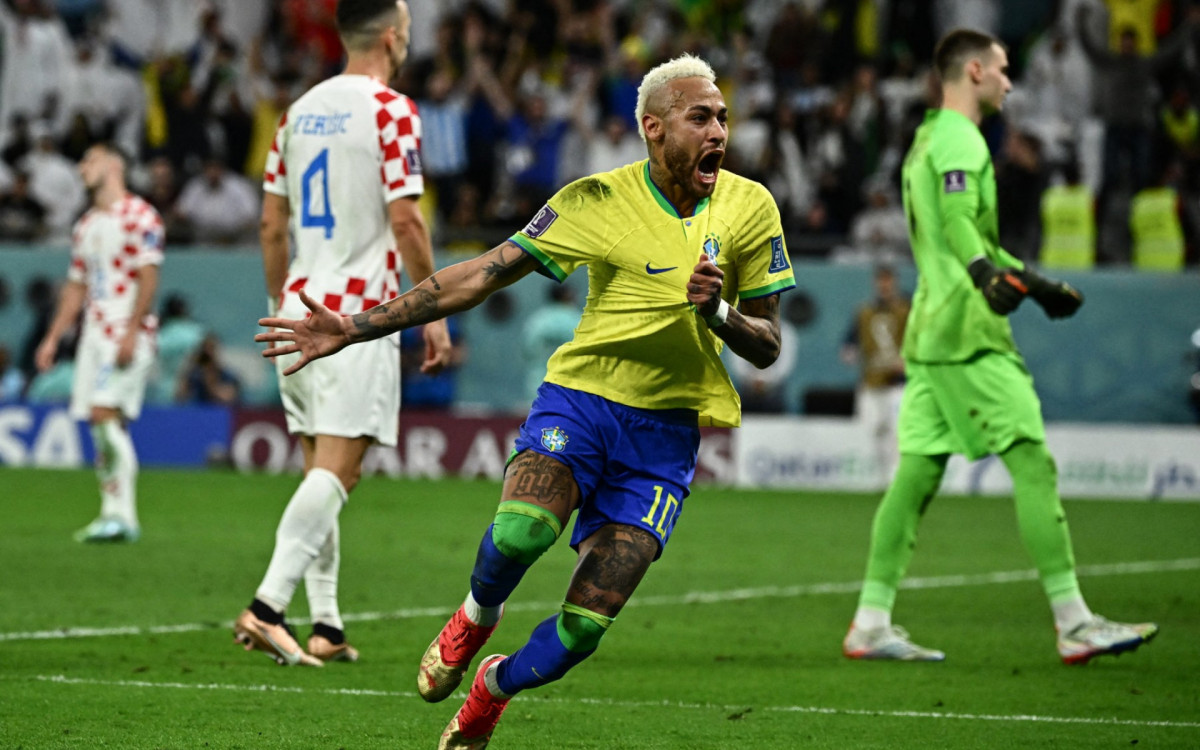 Neymar comemora gol contra a Croácia na Copa do Mundo de 2022Jewel Samad/AFP