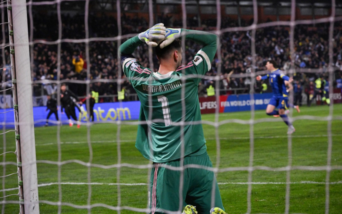 Lamentação de Donnarumma após a derrota da Itália para Bósnia nos pênaltisElvis Barukcic / AFP