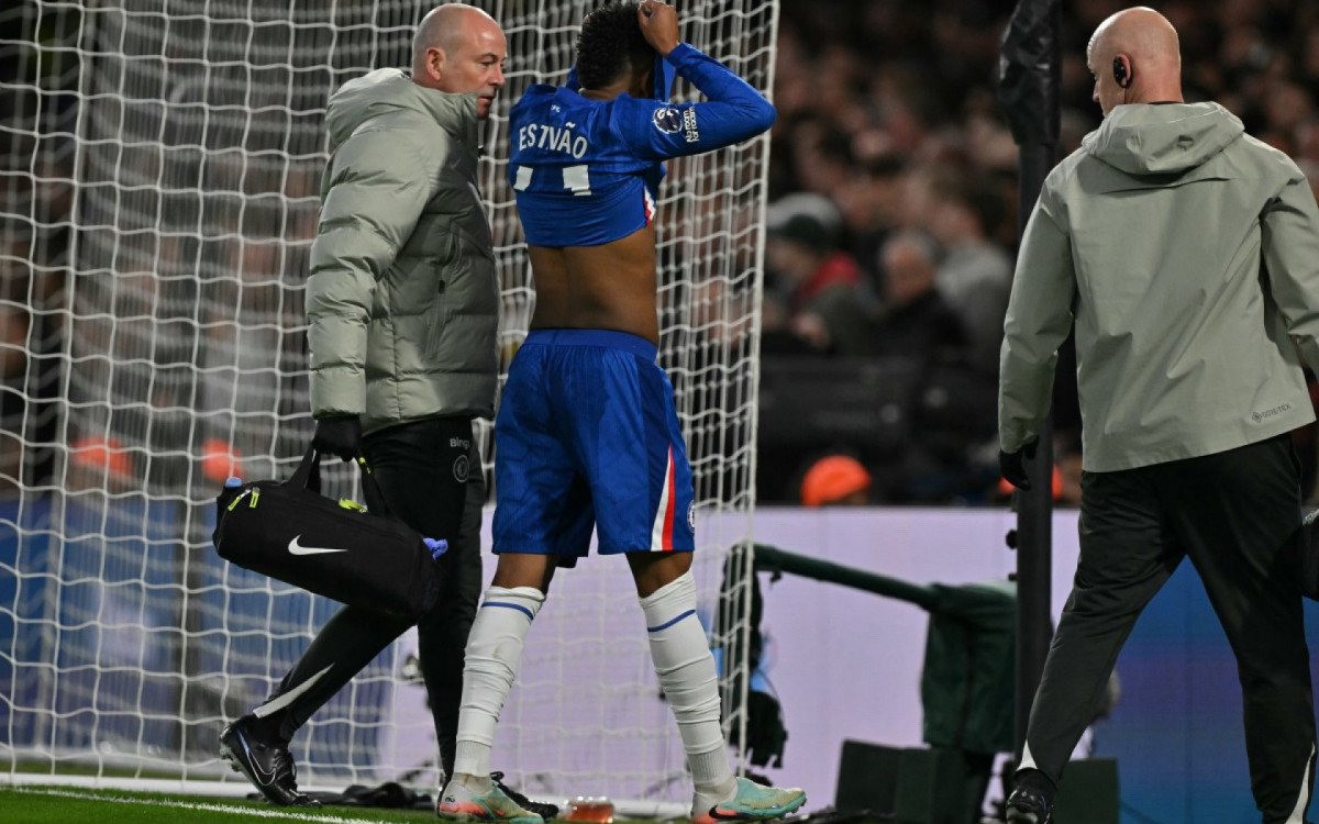 O lance aconteceu aos 12 minutos do primeiro tempo. Estêvão avançou pelo lado direito, invadiu a área e chutou fraco já dentro da área. Logo depois, caiu no gramado. O argentino Garnacho substituiu o camisa 41.