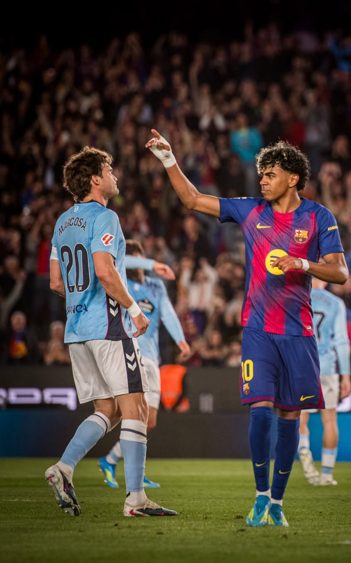 O time catalão apostou em jogadas pelo lado direito com Lamine Yamal, mas a defesa do Celta se mostrou bem posicionada e bloqueou o avanço adversário.