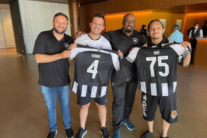 Os alvinegros receberam camisas oficiais, posaram para foto com Mazzuco e também com um dos seguranças que aparecem nos vídeos.
