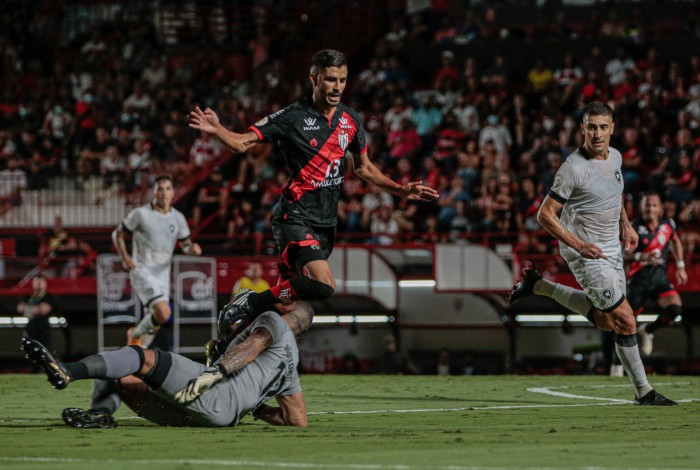 Pelo lado do Atlético-GO, a história não foi diferente. O time goiano teve dificuldades para se lançar ao ataque o pouco ameaçou o Botafogo. Porém, foi do Dragão a única chance de gol na primeira etapa. Aos 39 minutos, Jorginho cobrou escanteio e Ramon Menezes ganhou de Lucas Fernandes pelo alto na pequena área, mas a bola passou a esquerda do gol defendido por Diego Loureiro e o placar ficou zerado no primeiro tempo.