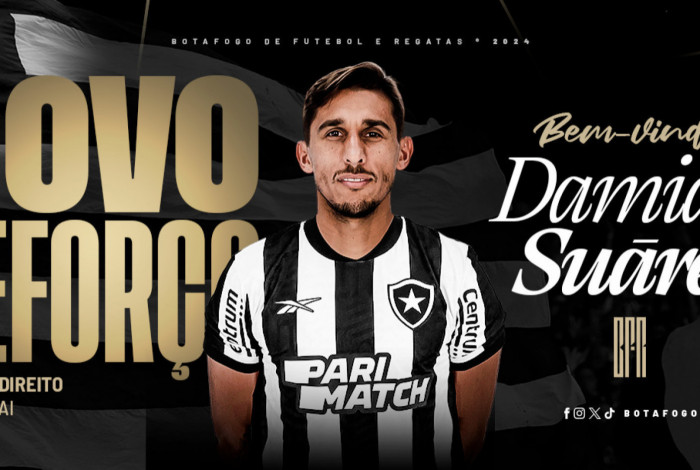 O Botafogo anunciou nesta sexta-feira (9) a contratação do lateral-direito Damían Suárez. O uruguaio de 35 anos chega após rescindir seu contrato com o Getafe, da Espanha, e assina vínculo válido até o final de 2025 com o Alvinegro.