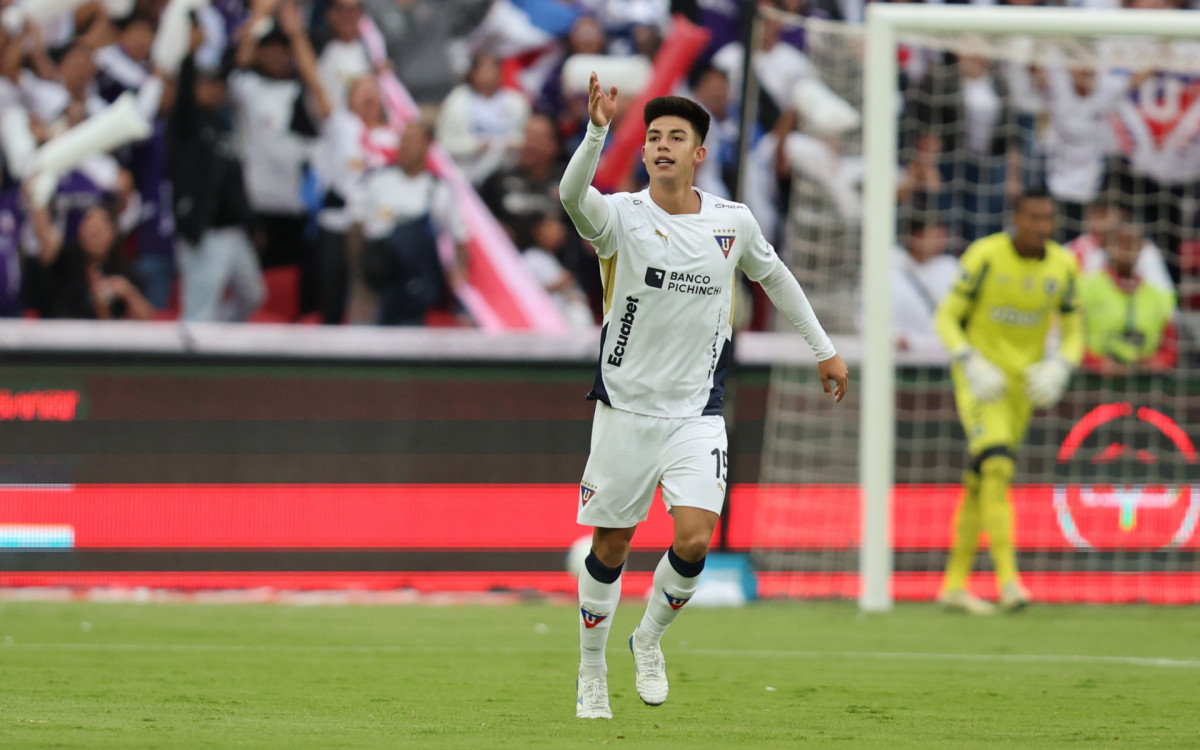 Jogo de volta das oitavas de final da Libertadores Data: 21/08/2025 Local: Rodrigo Paz Delgado, em Quito, no Equador LDU: Gonzalo Valle; José Quintero, Richard Mina, Ricardo Adé, Leonel Quiñónez e Bryan Ramírez (Gian Franco Allala); Carlos Gruezo, Gabriel Villamíl e Fernando Cornejo (Kevin Minda); Lisandro Alzugaray (Yeltzin Erique) e Jeison Medina (Alejandro Cabeza). Técnico: Tiago Nunes Botafogo: John; Vitinho, Marçal, Barboza e Alex Telles; Allan (Newton), Marlon Freitas (Arthur Cabral), Danilo e Savarino (Joaquín Correa); Artur (Montoro) e Matheus Martins (Jeffinho). Técnico: Davide Ancelotti Árbitro: Facundo Tello (ARG) Assistentes: Juan Belatti (ARG) e Gabriel Chade (ARG) VAR: German Delfino (ARG) Gols: Gabriel Villamíl, aos 7' do 1ºT (1-0); Lisandro Alzugaray, aos 15' do 2ºT (2-0) Cartões amarelos: Fernando Cornejo (LDU); Barboza, Danilo, Marlon Freitas (BOT) Cartão vermelho: Richard Mina (LDU)