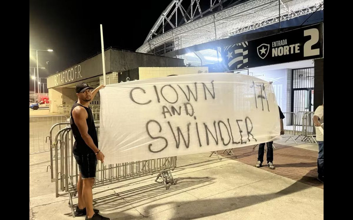 Protesto de torcedores do Botafogo no Nilton Santos, nesta terça-feira (30)Igor Melo / Rádio Craque Neto