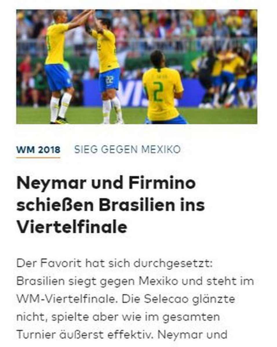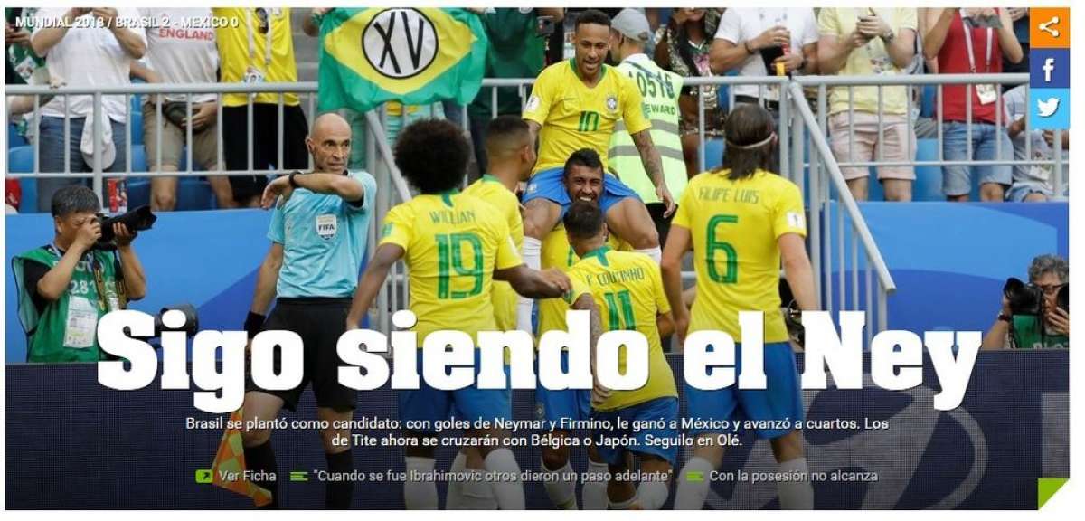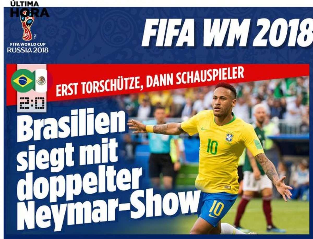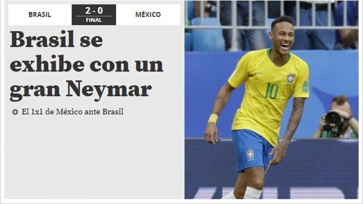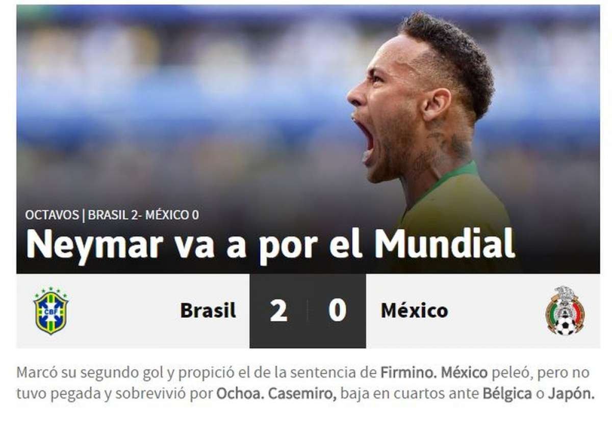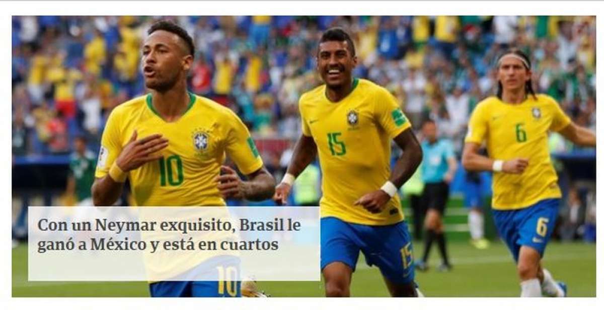 A imprensa internacional deu destaque ao Brasil, que ao contrário de candidatos ao título, como Argentina, Alemanha e Espanha, segue vivo no Mundial da Rússia. O principal destaque dos jornais foi para Neymar, que fez um gol e participou de outro.