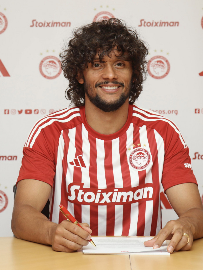 Gustavo Scarpa não está tão sorridente assim, como na apresentaçãoDivulgação / Olympiacos