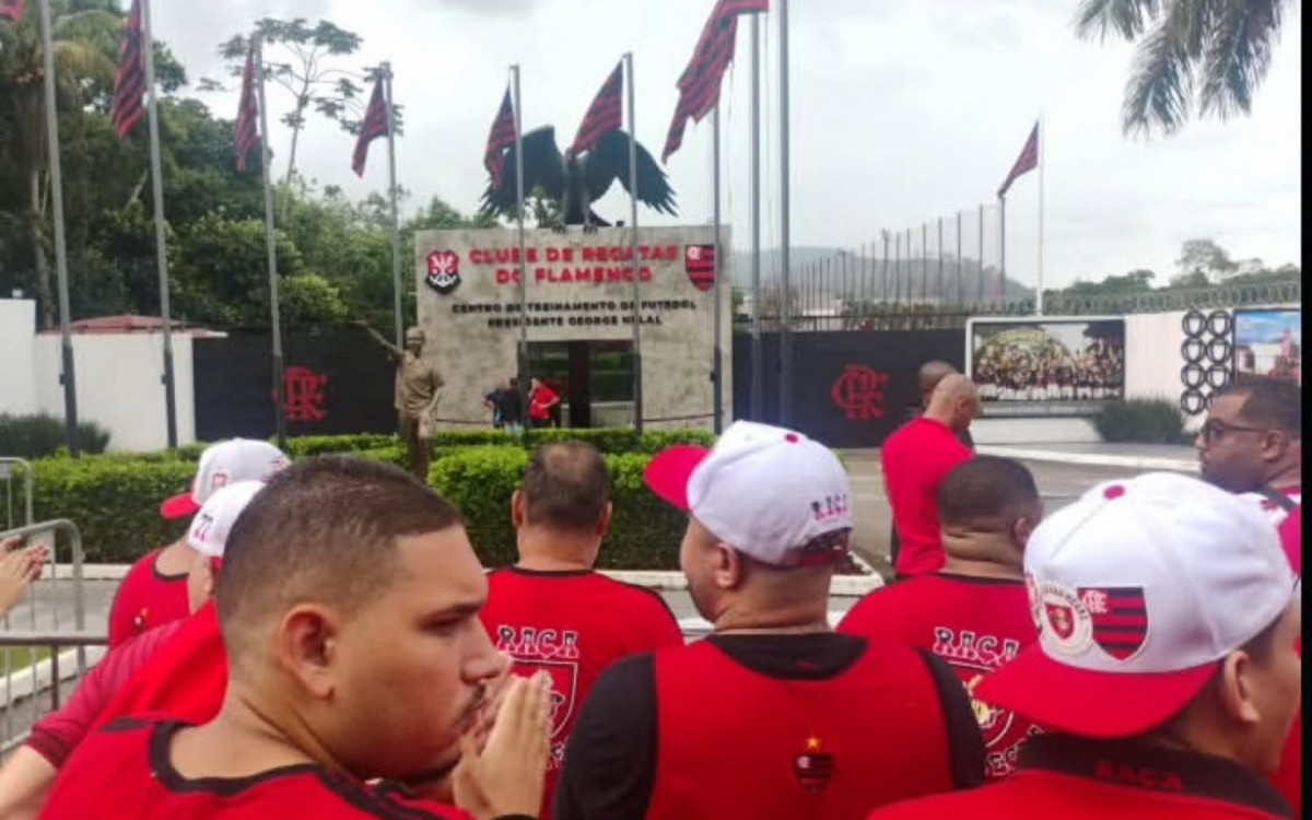 Torcedores do Flamengo protestam em frente ao CT do Ninho do UrubuReprodução de redes sociais