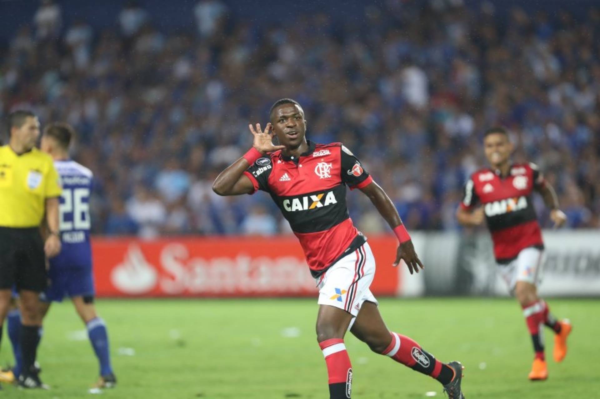 Vinícius Júnior comemora grande atuação contra o Emelec em 2018 - GILVAN DE SOUZA/FLAMENGO