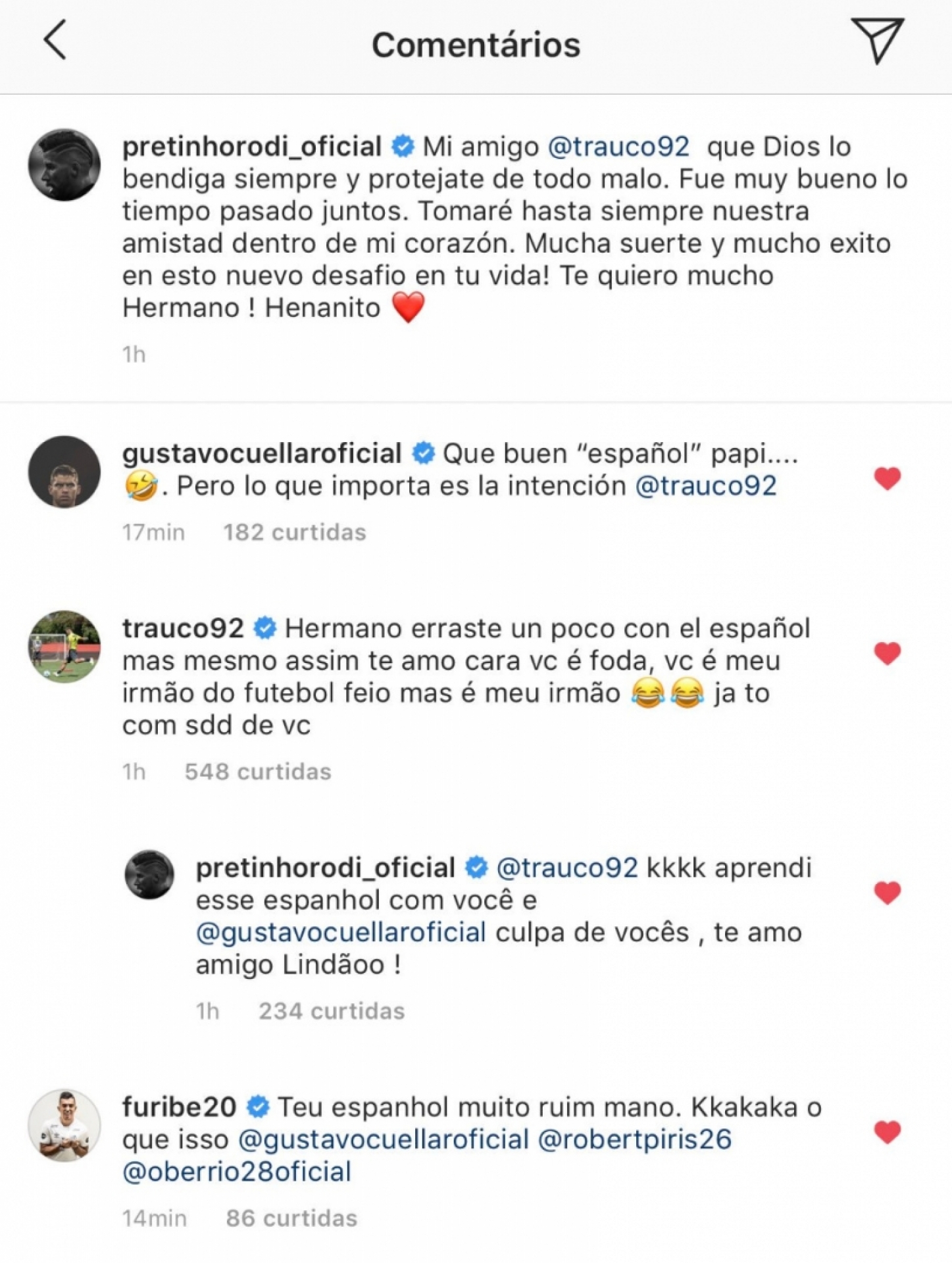 Brasileiro postou uma foto desejando boa sorte ao peruano e é zoado pelos companheiros nos comentários pelos erros de espanhol