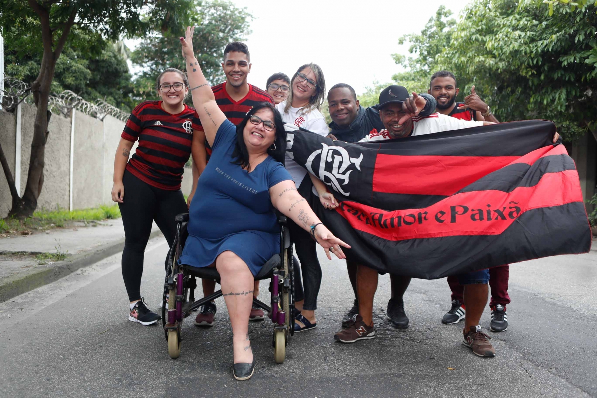 A rubro-negra Ana Helena, cadeirante e moradora da Ilha do Governador, não viu impedimento para comparecer ao Aerofla. O único problema é que ela não pôde ir vestida com uma camisa do Flamengo, já que a fornecedora de material esportivo do clube não fabrica camisas para o seu tamanho.