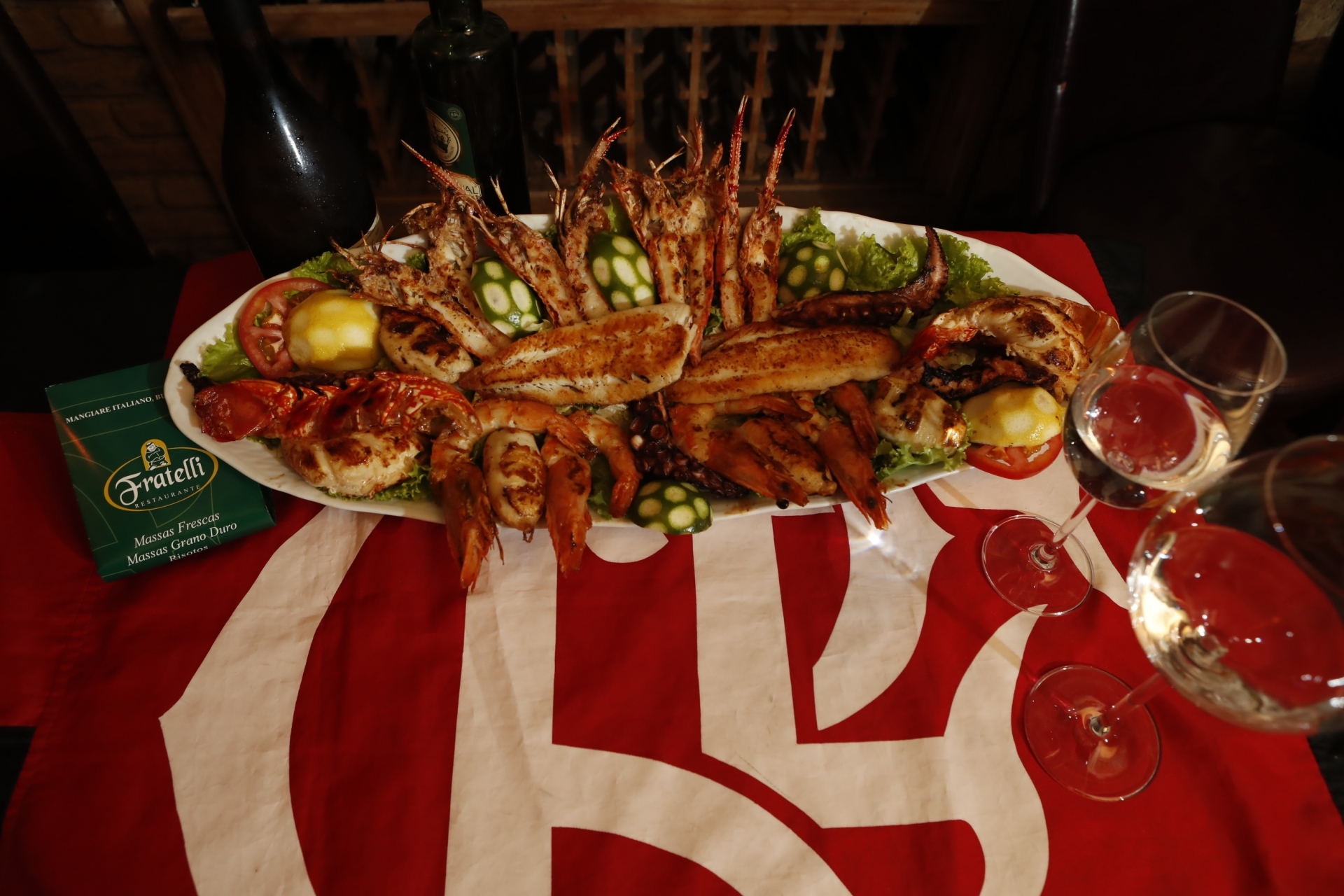 Com camarões VG, scampi, polvo, lagosta, lulas e filé de linguado servidos com arroz de açafrão, o prato agora aparece no cardápio como ‘Grelhada mista à la Jesus’ e custa R$ 450 para duas pessoas. Como acompanhamento, o técnico do Flamengo gosta de beber vinho branco.