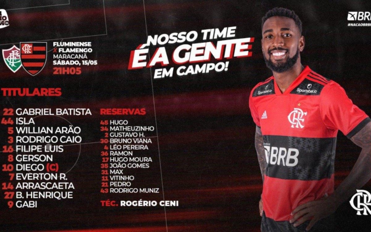 Nosso Time é a Gente em Campo! O Mengão está escalado para enfrentar o Fluminense, no Maraca, pelo primeiro jogo da final do Cariocão! Pra cima! #FLAxFLU #VamosFlamengo pic.twitter.com/sPdnwlUV1p