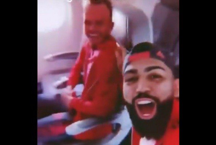 Gabigol e delegação do Flamengo vibram ao aterrizarem no RioReprodução