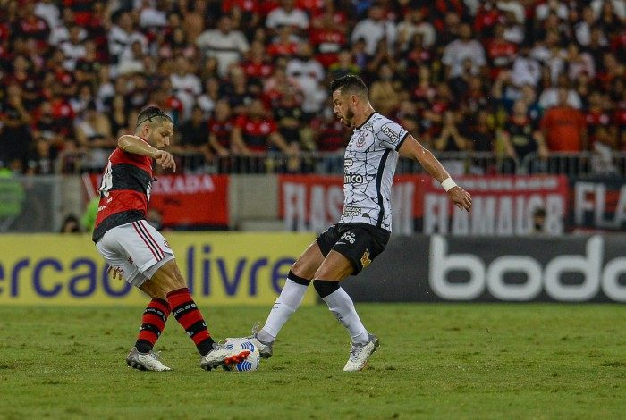 Antes do fim do primeiro tempo, o Flamengo quase conseguiu abrir o placar. Matheuzinho pegou rebote na entrada da área, e Cássio saltou para espalmar no cantinho, salvando o Corinthians de levar o primeiro go no Maracanã.