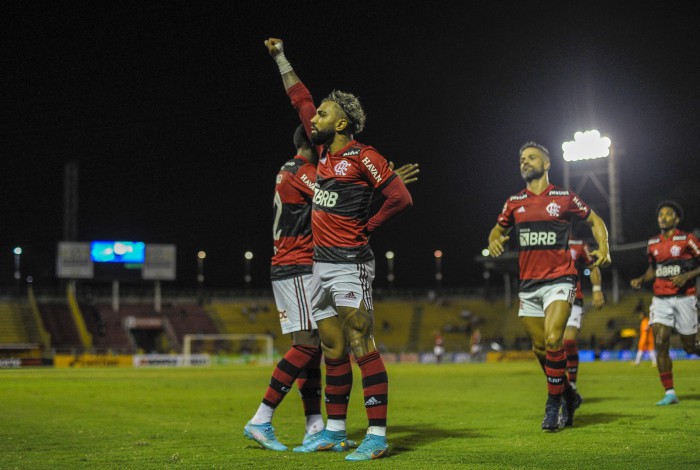 Gabigol comemora seu gol contra o Nova Iguaçu, fazendo o gesto contra o racismoMarcelo Cortes/C.R. Flamengo