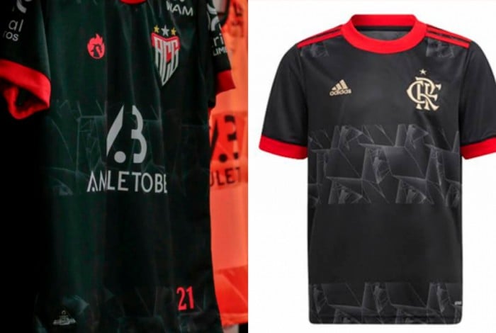 Semelhanças entre as camisas do Atlético Goianiense e do FlamengoBruno Corsino/ACG - Reprodução