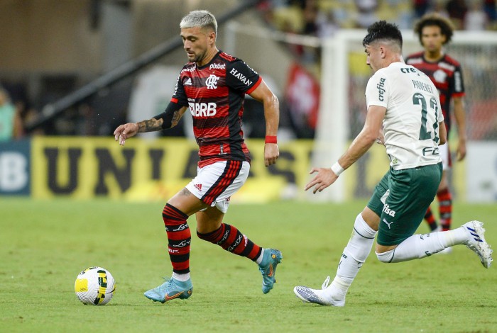 Flamengo e Palmeiras fizeram uma partida compatível com o nível de seus elencos vencedores. Pressão na saída de bola, boas jogadas trabalhadas e muitas chances de gol. Mandante, o Flamengo chegou perto do primeiro gol em algumas vezes, duas delas com Arrascaeta ficando no quase. Em uma delas, após batida cruzada de Gabigol, o uruguaio se esticou todo, mas jogou a bola na rede pelo lado de fora. Depois, em um chute de fora da área, acertou a trave.