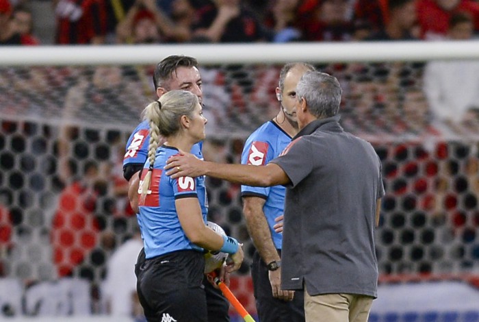 Raphael Claus (Fifa/SP) registra em súmula que atleta foi atingido por um líquido jogado por um torcedor do Furacão, na Arena da Baixada, no último sábado