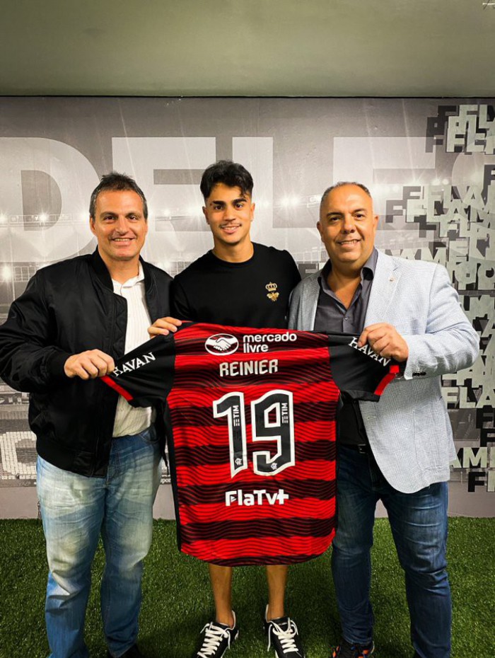 O Flamengo presenteou Reinier com a camisa 19, número utilizado pelo jogador em sua passagem pelo Rubro-Negro. A visita foi registrada pelo clube, que postou uma foto no Twitter, com o meia acompanhado pelo vice de futebol, Marcos Braz, e o diretor executivo, Bruno Spindel.