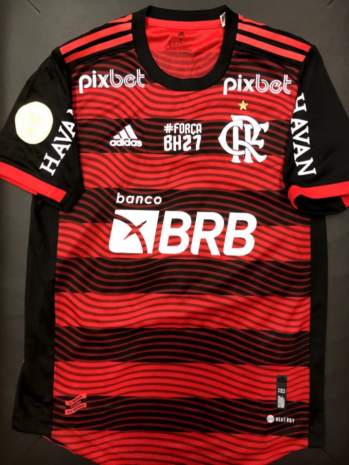 Rio - O Flamengo anunciou, na tarde deste domingo (19), que fará uma homenagem ao atacante Bruno Henrique no confronto com o Atlético-MG. Todos os jogadores do elenco rubro-negro utilizarão uma camisa especial, que contém os dizeres "#ForçaBH27".