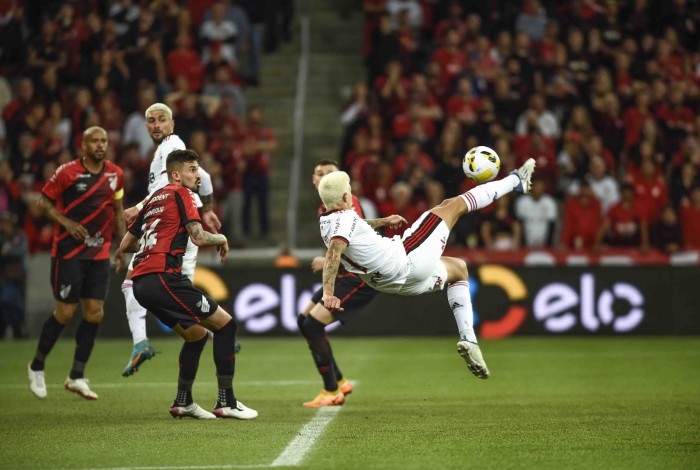 O Athletico passou a ter mais a bola, mas esbarrava na falta de criatividade para envolver o Flamengo, que baixou as linhas de marcação como estratégia para contra-atacar e foi exatamente assim que o Rubro-Negro quase ampliou. Arrascaeta raspou de cabeça, Pedro recebeu na frente e serviu Gabi, mas o camisa 9, sem marcação, chutou na trave.