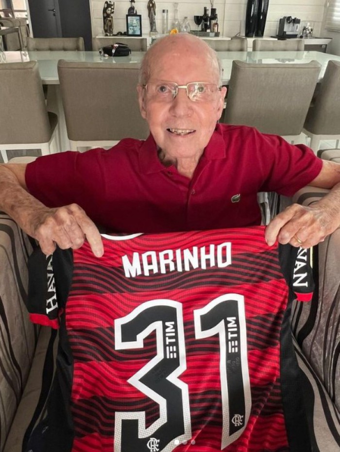 Um dos grandes nomes do futebol brasileiro e do Flamengo, Zagallo ganhou uma camisa utilizada por Marinho na final da Copa do Brasil, conquistada pelo Rubro-Negro sobre o Corinthians, nos pênaltis.