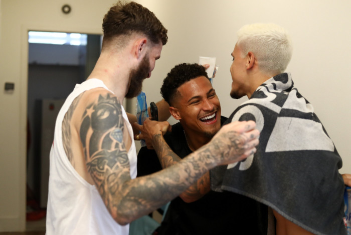 “O Flamengo realmente é minha casa”, escreveu o jogador, que foi recebido pelo elenco com uma “pegadinha” e acabou tomando um “banho de água”.