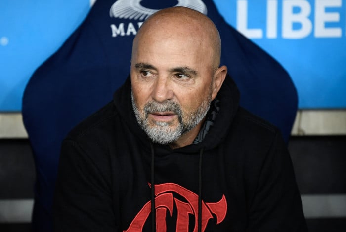 Jorge Sampaoli, do Flamengo, no banco de reservas do MaracanãFoto: MAURO PIMENTEL / AFP