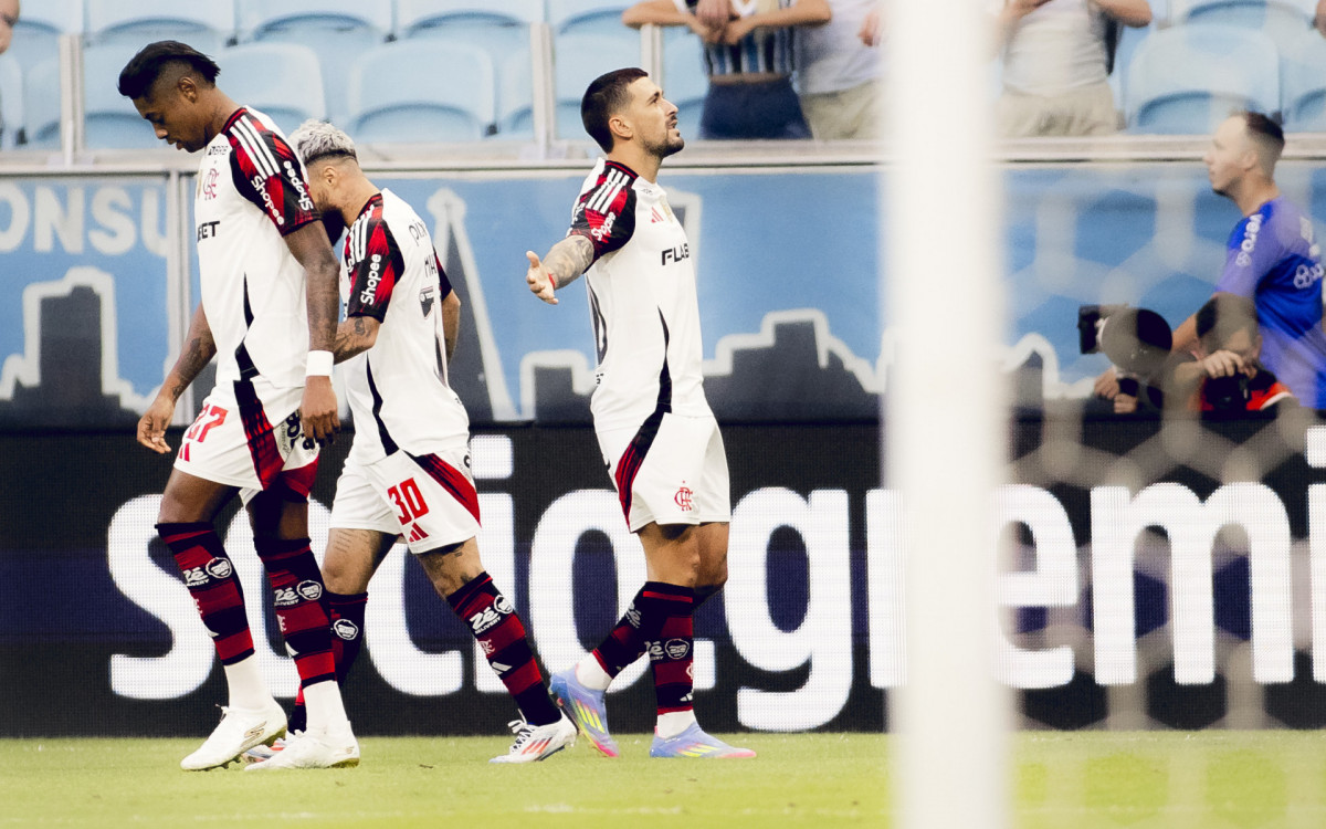 Camisa 10 fez os dois gols do Rubro-Negro contra o Grêmio, em Porto Alegre