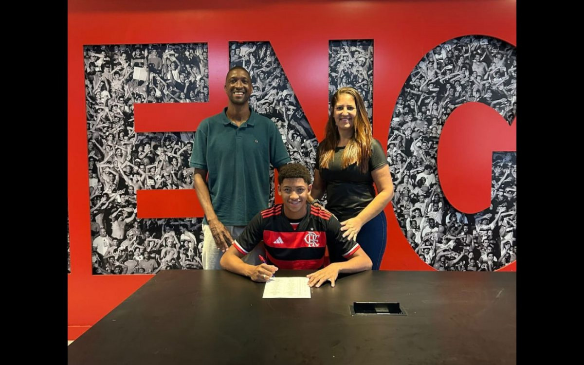 Ele vestiu a camisa do Coelho por quase sete anos e já defendeu a seleção brasileira sub-15. O garoto esteve no Ninho do Urubu para assinar o vínculo com o clube e, na sequência, já participou das atividades com o elenco do sub-17.