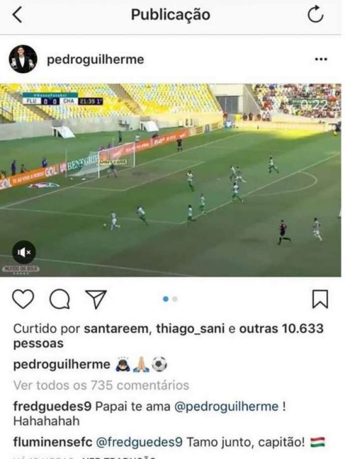 Fred declara orgulho por Pedro em rede social - Reprodução Instagram