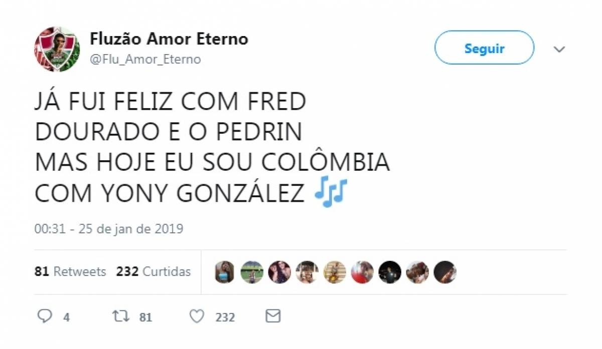 Após a partida, diversos comentários dos tricolores surgiram na Web exaltando a atuação do colombiano, que já é considerado um novo "xodó" nas Laranjeiras.