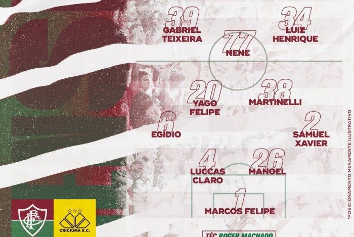 Escalação do Fluminense: Marcos Felipe; Samuel Xavier, Manoel, Luccas Claro e Egídio; Martinelli, Yago Felipe e Nenê; Luiz Henrique, Gabriel Teixeira e Fred.