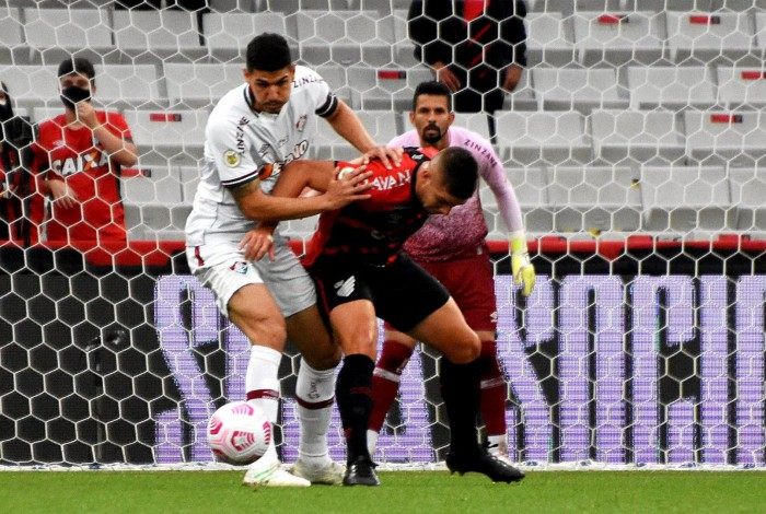 Nino sofreu choques de cabeça durante o confronto na Arena da Baixada. O defensor teve de ser sacado logo após uma dividida com o atacante do Furacão, Carlos Eduardo.
