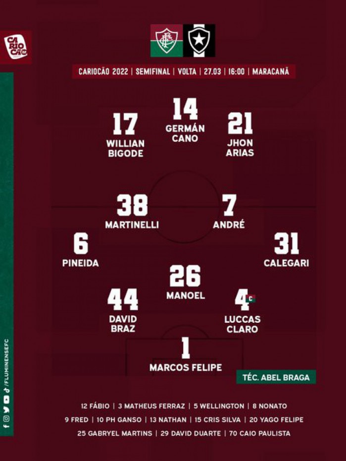 Com isso, o Fluminense vai a campo com: