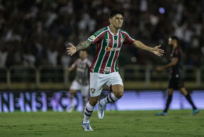Cano comemora um dos gols que marcou em Volta RedondaMARCELO GONÇALVES / FLUMINENSE FC