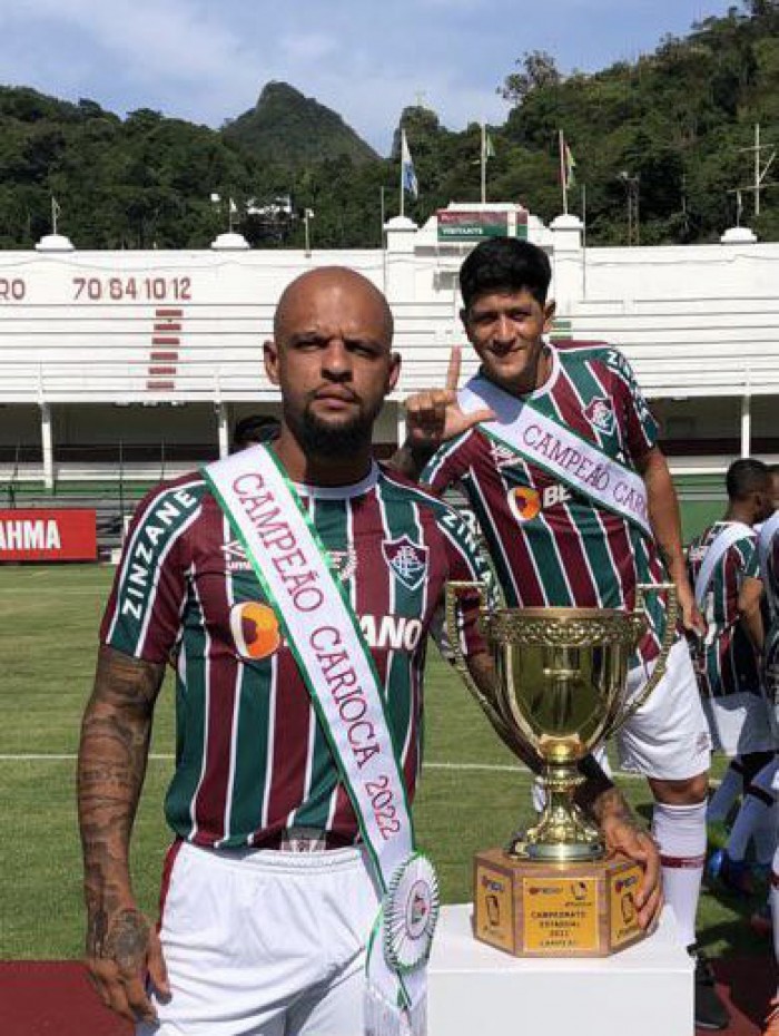 Felipe Melo e Germán Cano com a faixa do título CariocaDivulgação / Fluminense