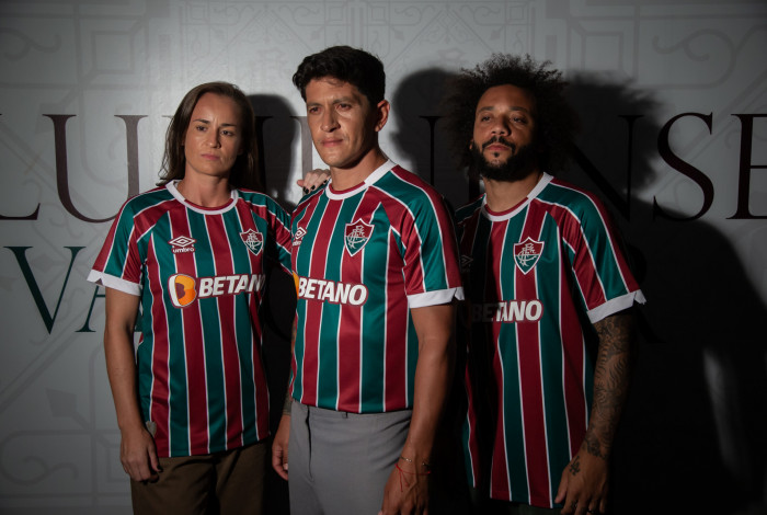 Rio - O Fluminense apresentou oficialmente nesta quinta-feira (4) a nova camisa tricolor para a temporada de 2023. A nova armadura, lançada em parceria com a Umbro, reforça a tradição do atual bicampeão carioca. O lateral-esquerdo Marcelo, o atacante Germán Cano e a zagueira Gislaine estrelaram a campanha de lançamento.