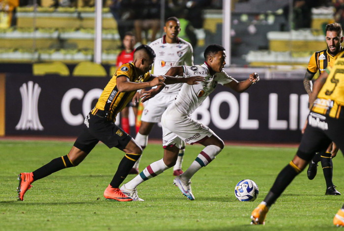 O Fluminense, por sua vez, pouco criou e foi para o intervalo sem uma finalização sequer na direção da meta defendida por Guillermo Viscarra. Apesar disso, o Tricolor teve oportunidades para empatar: na primeira, Lelê retomou a posse dentro da área do Strongest após um vacilo da defesa, mas tomou a decisão errada e não concluiu; pouco depois, John Kennedy teve espaço para finalizar de fora da área, mas pegou mal na bola.