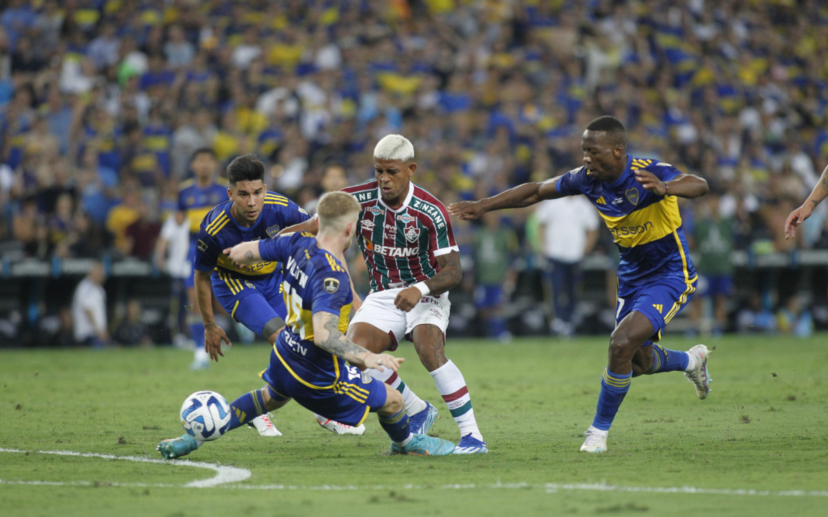 Em 2023, John Kennedy marcou o gol do título na Libertadores, sobre Boca Juniors, um dos três argentinos no caminho do Fluminense - Reginaldo Pimenta / Agencia O Dia