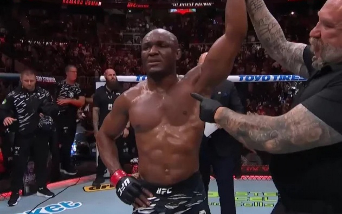 Kamaru Usman domina e volta a vencer após 3 anos e meio da última vitória (Foto: Reprodução)
