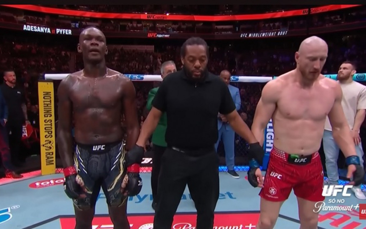 “Não (nada me surpreendeu), eu esperava a melhor versão do Joe Pyfer. Sabia que seria a maior luta da vida dele e que ele traria o seu melhor, e ele fez isso. Nada me surpreendeu, esperava o melhor e ele trouxe. Antes dessa luta eu disse, já eram 13 meses (sem lutar), eu queria sentir como era estar na luta, e ele me deu isso. Dei a chance para ele e ele foi muito bem. Parabéns ao Joe Pyfer por isso. Vou continuar (lutando), de novo, de novo e de novo. Eu não vou embora, p***. Vocês nunca vão me parar. Eu posso ser derrotado, mas eu sempre permanecerei imbatível (mentalmente)”, destacou Adesanya.