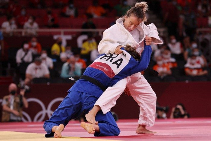 Japão - A brasileira Gabriela Chibana está eliminada na disputa de medalhas na categoria até 48Kg do judô. Após estrear muito bem, com vitória em 14 segundos, ela caiu na segunda luta diante da campeã mundial. O segundo combate da brasileira foi bastante complicado e ela acabou levando um ippon quando restavam 1min40, para a número 1 e campeã mundial Distria Krasniqi, de Kosovo.