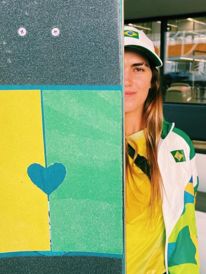 A catarinense Yndiara Asp, de 23 anos, não escondeu a emoção de representar o Brasil numa Olimpíada. Com uma série de vídeos e fotos postados nas redes sociais, ela 'estampou' o orgulho nos skates customizados com as cores da bandeira brasileira que usará em Tóquio.