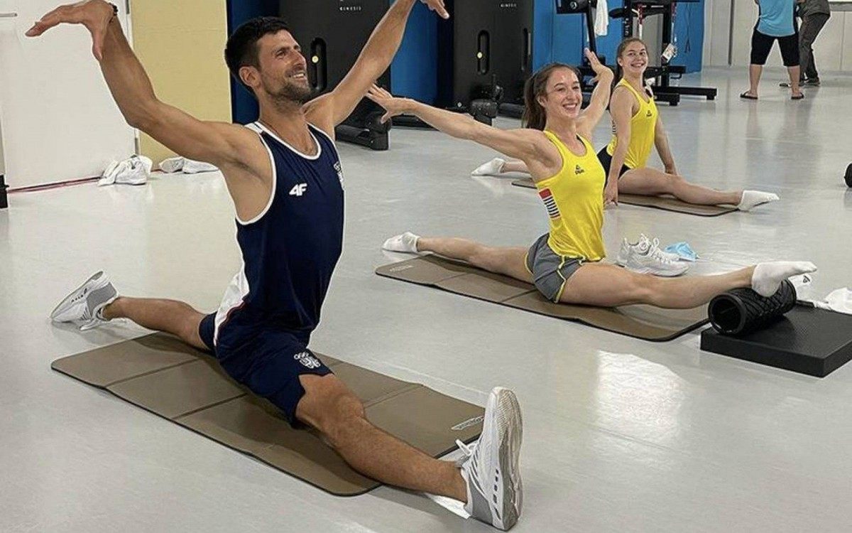 Tóquio - Depois do ataque de fúria no treino de quinta-feira, quando quebrou a raquete ao arremessá-la no quadra do Parque de Tênis Ariake, Novak Djokovic voltou a mostrar a faceta bem-humorada ao 'invadir' o aquecimento da seleção de ginástica artística da Bélgica. O tenista sérvio mostrou flexibilidade para reproduzir o espacate das atletas.